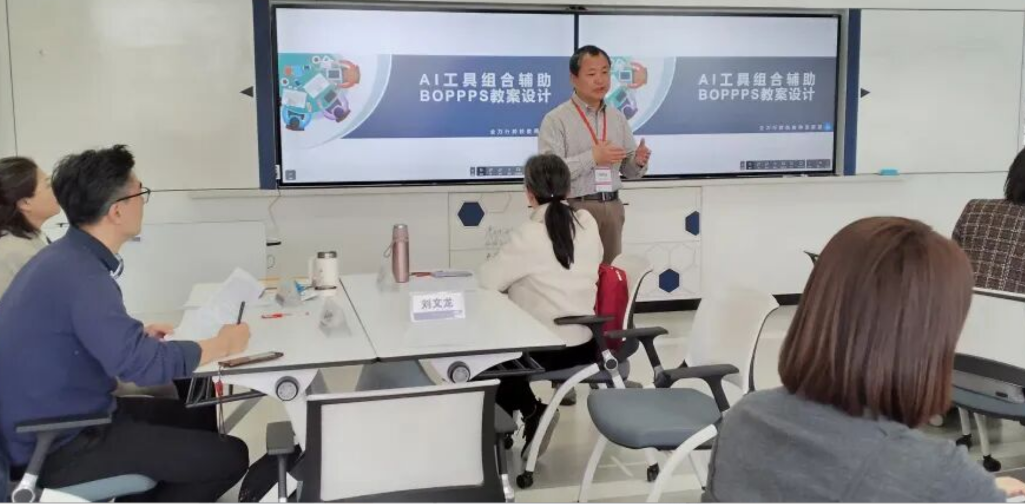 工作坊首日,张胜全教授在系统解析BOPPPS六环节设计逻辑后,引入AI辅助设计工具,指导校本培训师们现场协作完成微课教案初稿,体验技术赋能的高效。下午的“引导员角色初探”环节,张教授倾囊相授十多年积累的引导秘籍,从“中立立场”到“流程管理”,从“安全氛围营造”到“结构化反馈技巧”,每一个要点都配有真实案例与即时练习。参训教师们纷纷表示:“这些实战心法正是我们最需要的‘宝典’!”